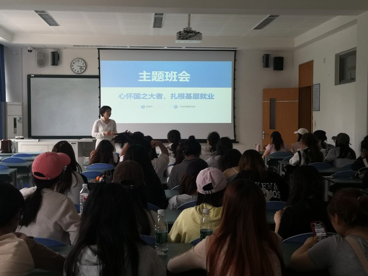 为2023级社会工作专硕班举办了“心怀国之大者,扎根基层就业”主题班会。辅导员谢素萍作为主讲人。