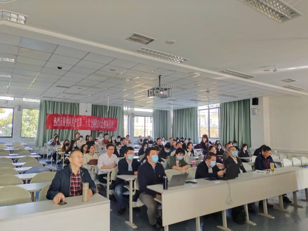 学习宣传贯彻落实党的二十大精神是当前最为重要的工作,研究院党委高度重视,统一部署,组织全院党员、发展对象、积极分子等师生在经世楼F201(柳林校区)和光华楼1506(光华校区)集中观看“党的二十大”开幕式直播。动员其他师生在家中、教室、寝室、图书馆、食堂等场所,通过电视、网络、手机、广播等多种媒介第一时间收听收看二十大开幕盛况,深入学习习近平总书记的报告。