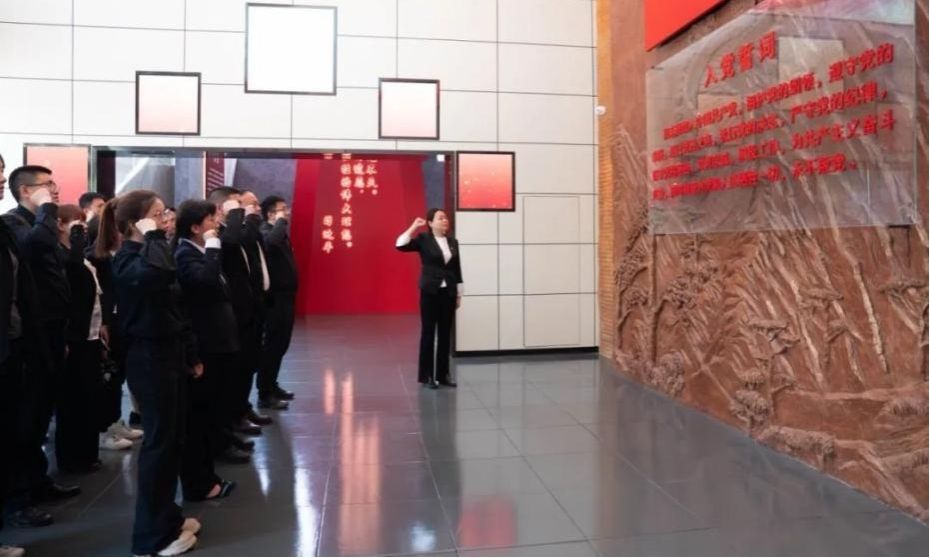 活动最后,面对鲜红的党旗,党员同志们重温入党誓词。铿锵有力的誓词在纪念馆中回荡,以此激励各位党员同志要在今后生活中不忘初心,牢记使命,始终发挥党员的先锋模范作用。