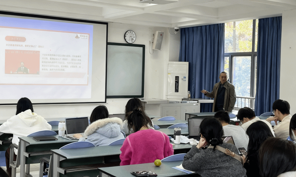 本次课程内容翔实、视野宏阔,既有理论深度,又贴近学生实际,为同学们带来深刻的思想启发和行动指引。岳敏勉励全体同学认真学习贯彻党的二十届四中全会精神,坚定理想信念,锤炼过硬本领,以实际行动为社会主义现代化建设贡献青春力量。