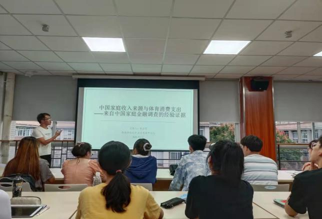 接下来,张云亮老师向大家分享了自己的论文《中国家庭收入来源与体育消费支出》,张老师结合“双减政策”与“体育进中考”等大背景对既有研究进行挖掘,将家庭收入来源作为自变量,家庭体育消费支出作为因变量,得出四点结论。第一家庭财产性收入和转移性收入增长对体育消费具有显著的积极影响;第二有机会获得财产性收入的个体和家庭,其劳动力市场的时间配置约束往往也相对宽松,因此财产性收入增长促进体育消费的作用更加稳健;第三金融类财产性收入的增加和非金融类财产性收入的增长均能够显著促进体育消费;第四家庭转移性收入增长对体育消费的正向影响存在城乡户籍的异质性:对非农户籍家庭体育消费的促进作用要明显甚于农业户籍家庭。