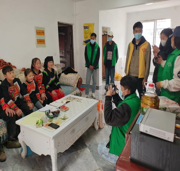 此次主题活动以关爱妇女为焦点,北辰社区青年志愿服务队成员通过入户走访的方式,为8位彝族妇女送去了温馨的新年祝福和精美的节日礼物。活动前期,青年志愿者们积极投入,并以其在当地的实践经验共同商讨具体实施方案,发挥了青年之智。其中针对“送什么”这一难题,经过商讨,他们根据当地风俗特点购买了既具彝族特色的头巾、梳子,也富有“生活特色”的油和大米。活动当天,青年志愿者们怀着虔诚的服务之心和饱满的热情逐家入户拜访,以己之力践行服务,贡献了青年之力。走入家中,他们与妇女们亲切交流,关心她们的生活,感谢她们为家庭做出的伟大付出,并为她们送上了节日礼物。最后,在相机的快门声中,一张张挂满笑脸的全家福记录下了这些易地搬迁居民们的幸福瞬间……
