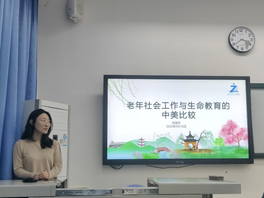 2022年4月15日下午15点30分,社会政策与社会工作研究所在光华校区明德楼举办了教师学术沙龙。本次学术沙龙由刘曼冬老师主讲,主题为“老年社会工作与生命教育的中美比较”。社会政策与社会工作研究所所长潘彦谷老师主持本次沙龙,社会政策与社会工作研究所老师以及社会工作专业全体同学参加了此次活动。