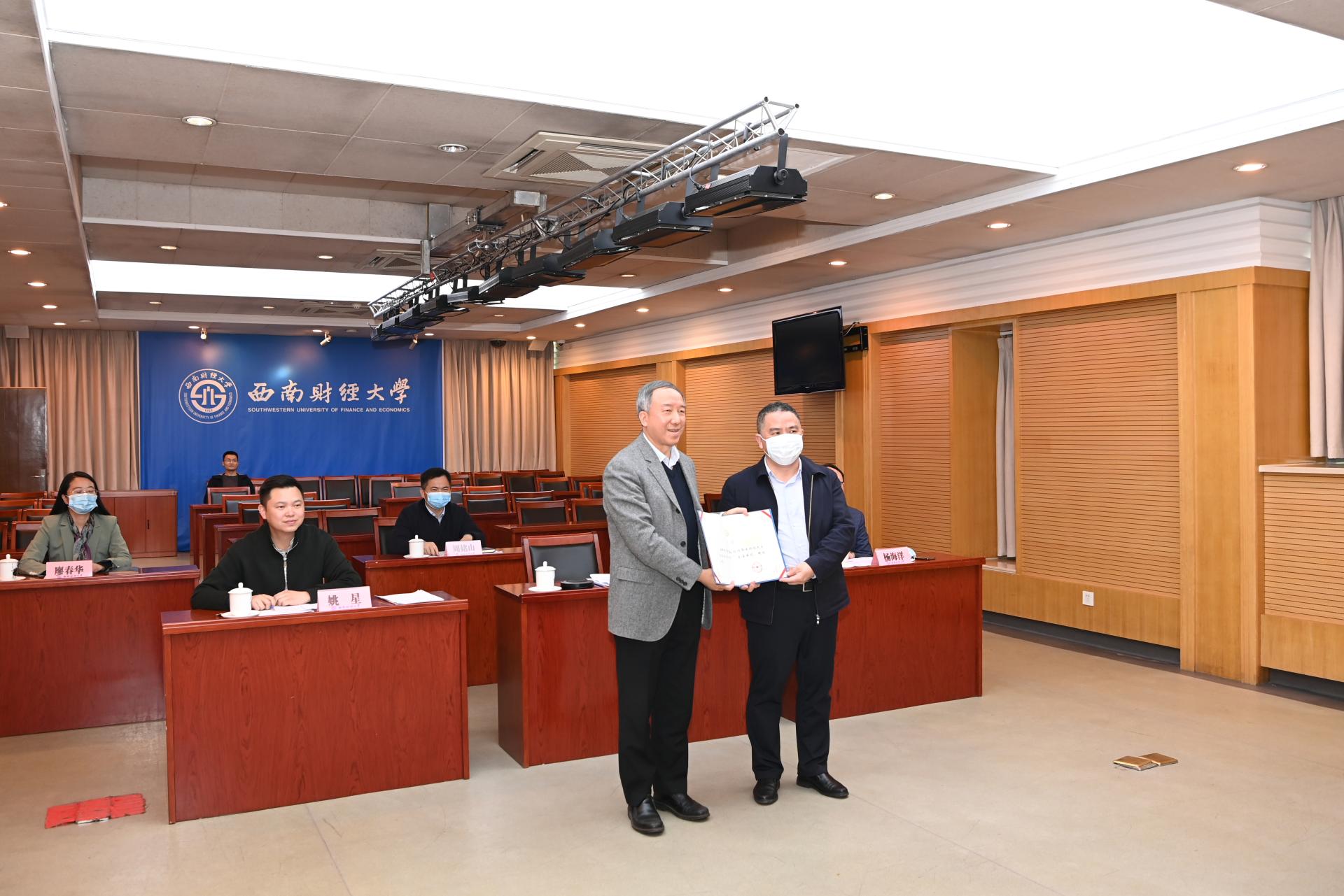 院长杨海洋对李强教授个人情况进行了介绍,随后卓志校长向李强教授颁发了聘任证书。
