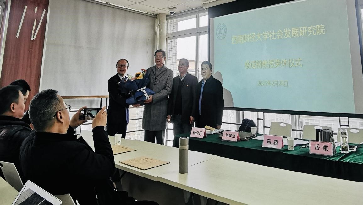 研究院于2月28日在通博楼A509会议室举行杨成钢教授荣休仪式。学校党委副书记马骁、全院教职工参加荣休仪式,院党委书记岳敏主持。