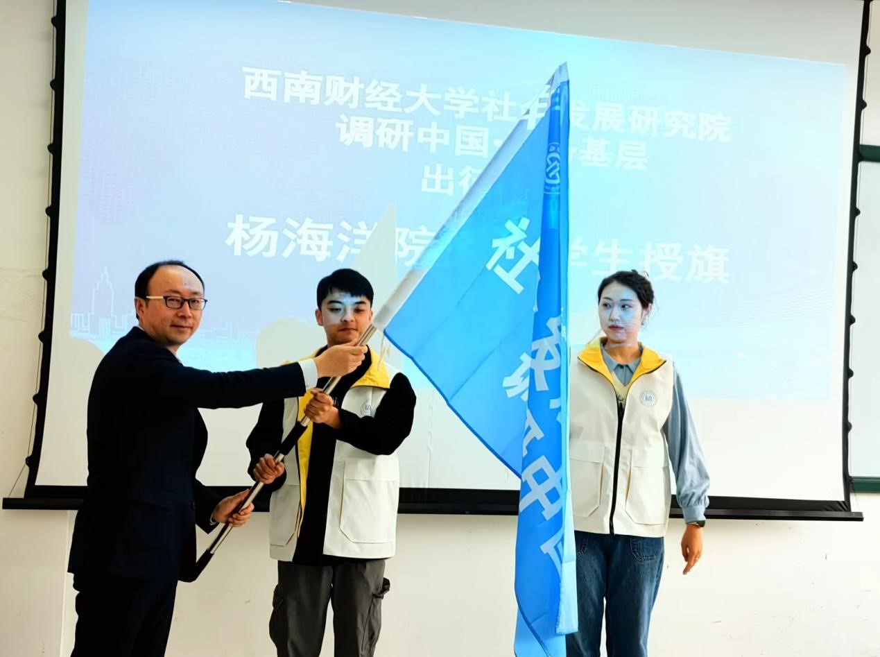 院长杨海洋为学生代表授旗。