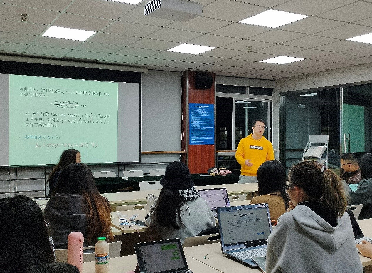 2023年4月6日晚,社会经济学所主办的“经济.社会+”新财经系列学术沙龙第二讲于通博楼A509成功开展。本场学术讲座由谭远发教授、张云亮老师主持,社会经济学所的余爽老师主讲,讲座主要介绍了在社会研究过程的内生性问题和工具变量法。