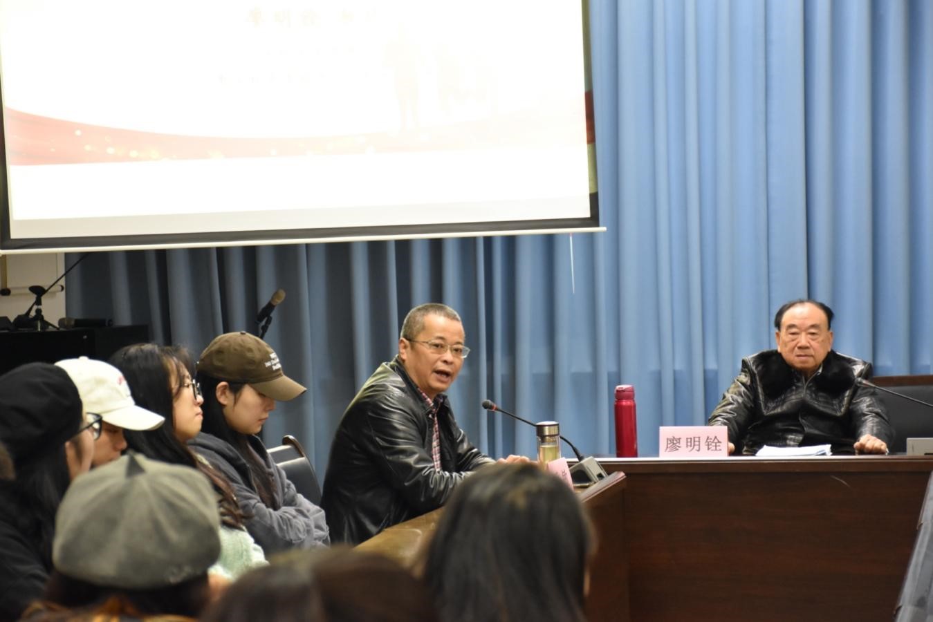 廖教授与现场同学讲述了西财从黄浦江畔到光华柳林的悠久校史,并分享了作为见证者经历其中的感受。在讲述过程中,廖教授回忆西财过往,绘声绘色地描述了嘟嘟成人网