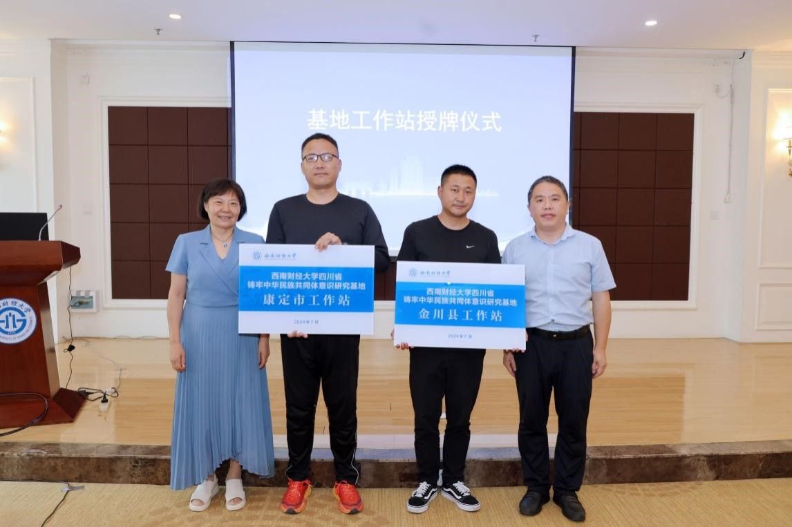 四川省铸牢中华民族共同体意识研究基地揭牌。谢红、边慧敏颁发研究基地学术委员会专家聘书。边慧敏和基地主任邓湘树向研究基地首批工作站授牌。