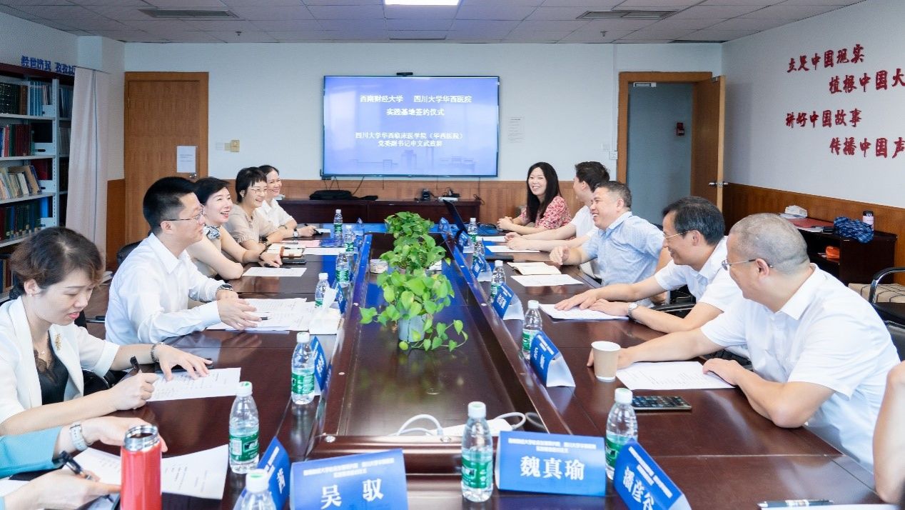 随后,双方进行了实习基地的签约仪式。桂富强校长向四川大学华西医院进行了授牌。