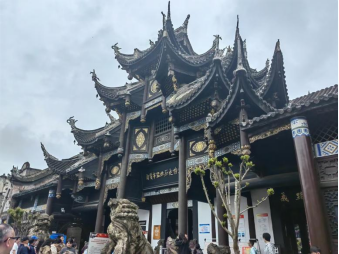 接着,师生前往桓侯宫与王爷庙从事调研。自贡桓侯宫始建于清乾隆年间,其兴建与自贡当地兴盛的盐业发展有关。作为国内迄今为止保存最完好的屠帮行业会馆之一,自贡桓侯宫具有重要的历史价值、文化价值与艺术价值,见证了自贡盐业的发展以及屠帮行业的兴衰,对于研究盐业资本主义发展、会馆演进、帮会发展等具有重要的实物参考价值。调研过程中,团队成员们仔细观察桓侯宫的布局结构,从每一处雕刻、每一块砖瓦中解读历史的密码,试图还原桓侯宫在历史长河中的真实地位和作用。通过对桓侯宫的调研,民俗学专业的师生们丰富了对其文化与艺术价值的认识。