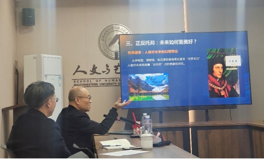 师生开展了《“优托邦”还是“敌托邦”——AI挑战下的人类未来》的专题讲座。讲座由研究院民俗学与人类学研究所所长潘斌教授主持,才让本副教授与谈,民俗学及其他相关专业师生参加了本次讲座。